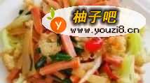 下午餐肉翻炒均匀,加盐、鸡精、蚝油调味。