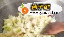 起锅烧油,油五成热时,小火下辣椒和大蒜头煸香。