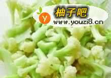 花椰菜用手掰成小朵朵,起锅烧水(水里加少许盐)水开后,下入花椰菜焯水一分钟。
