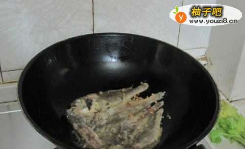 6小黄鱼放入油锅里煎,表面煎至金黄色