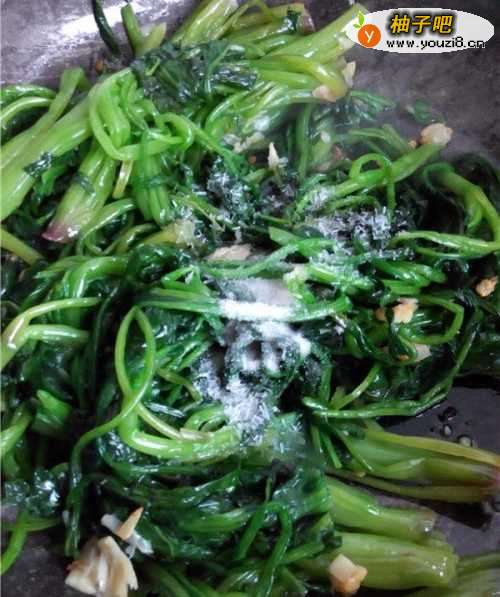 5捞出来用凉水过凉,挤掉水分,切成段。