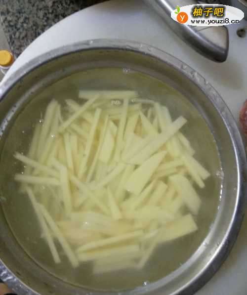 将土豆洗净切细条;