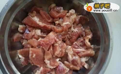 2将瘦肉洗净切成细条,加料酒、生抽、老抽,抓匀,腌制五分钟;