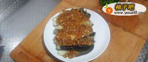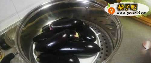 洗茄子,去掉根,然后蒸至软烂;