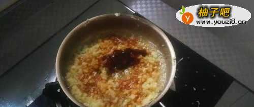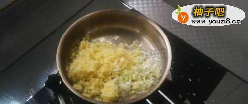 5接下来,铺上炒好的蒜蓉;