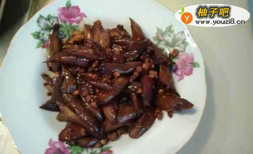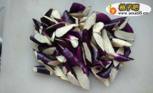 肉末100克,备用;茄子400克,洗干净切块,如图