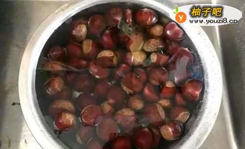 把栗子放入盆里,清洗干净,小尾巴都揪去更方便。