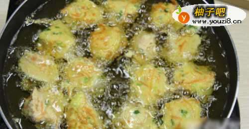 6再次将豆腐丸子全部下入8成热油锅进行复炸;