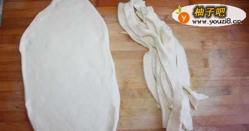 3将饧好的面抹上油,擀薄,切长条,然后饧10分钟。