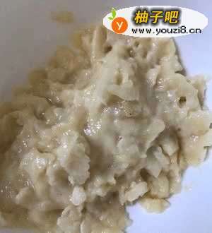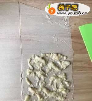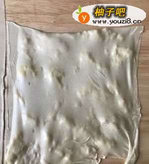 9把四分之一香蕉糊糊(半根香蕉的量)均匀涂抹一半的面皮