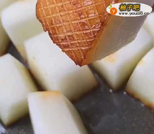 3将沾过酱油的冬瓜面煎至金黄