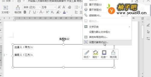 4选择文本框,单击【鼠标右键】,选择【设置对象格式】;