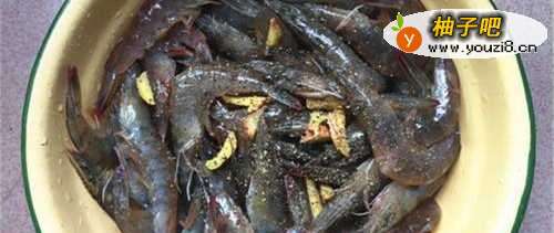 3锅中注入食用油,下腌好的虾炸制(炸制虾变红色后捞出控油)