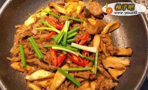 杏鲍菇与肥牛肉片,用一颗洋葱拌炒后,就是一道美味的家常菜