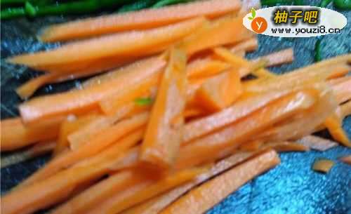 3胡萝卜去皮后切成丝待用。