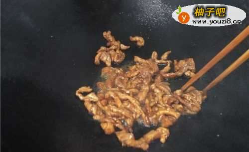 5猪肉炒至呈金黄色即可。