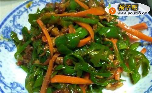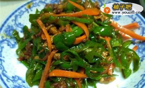 家常菜胡萝卜青椒肉丝