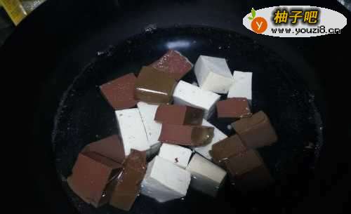 2鸭血和少量的豆腐块焯水,焯水的时候加点食盐!