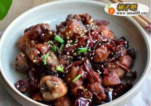 “带有辣味的菜肴是我和耿同学的最爱,所以隔段时间就会做上一道解馋,辣子鸡麻辣鲜香,好吃又过瘾,又怎能错过!”