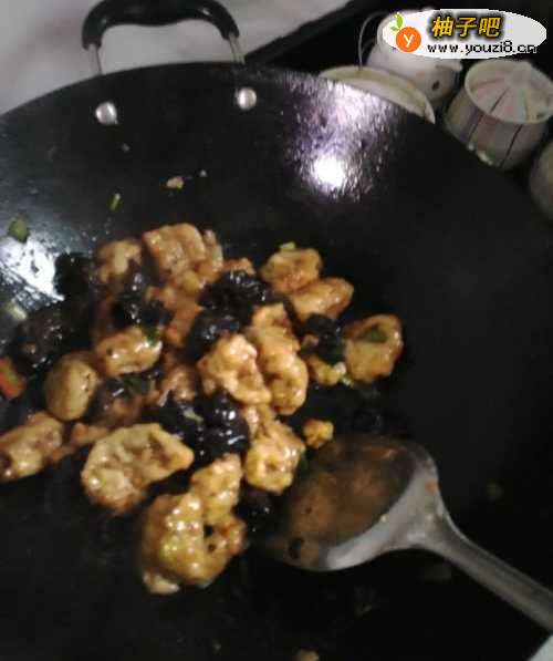 8第八步,在锅中加入适量的鸡精就可以起锅了。一道简单的木耳烧茄子就完成了。