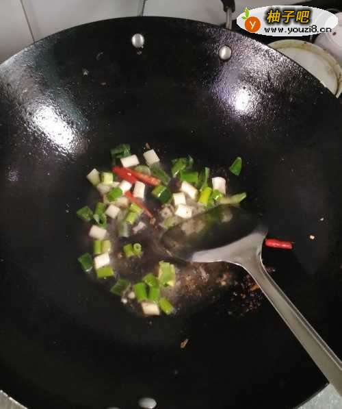 4第四步,在锅里加适量花生油,油熟以后加入葱。