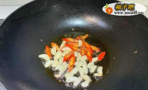 2油热入蒜头辣椒爆香