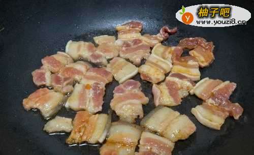 6起锅烧热,放入少许食用油,放入五花肉煎至双面金黄;