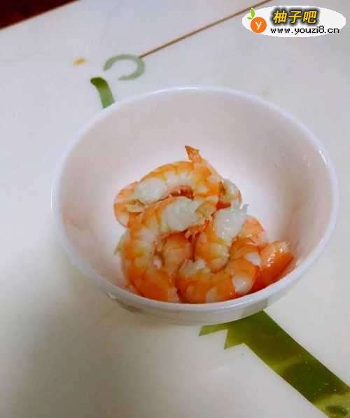 2鲜虾焯水剥壳,后背开刀对半切。