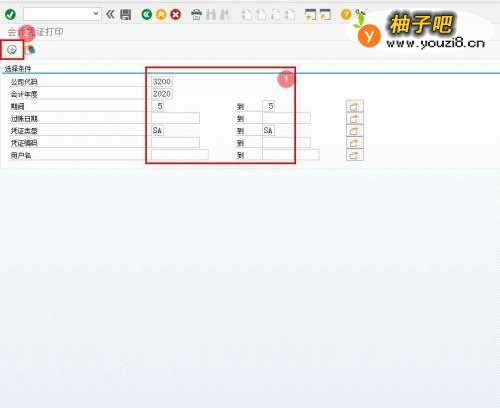 4在"凭证打印过滤"窗口,输入【选择条件】,点击【确定】图标即可;