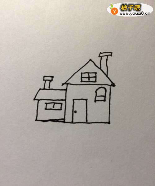 5在房子的边上再画出一个小房子。