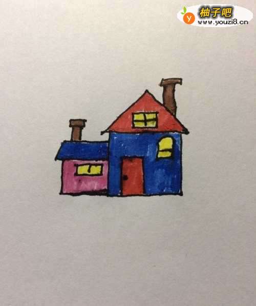 6最后,填上自己喜欢的颜色。房子就画好了。