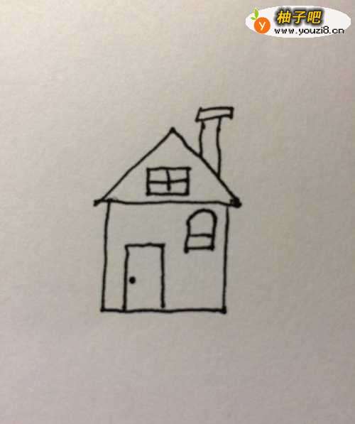 4接下来,再画好门窗和烟囱。
