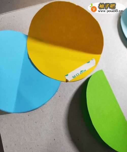 4用双面胶把每个圆形都粘一个角。