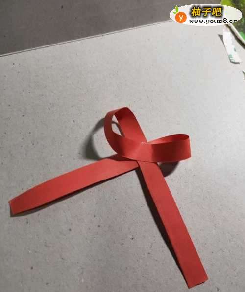 6再用红色彩纸做成一个蝴蝶结。