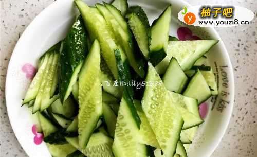准备好两条黄瓜洗净,切好先装入盘子里备用。