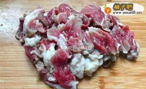 2这个瘦肉是冬天放盐腌过的,提前拿出解冻好洗干净,切成片。