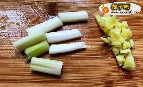 3准备好一些葱白和姜,待会炒瘦肉时可以去除腥味。