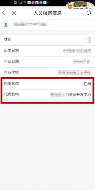 5系统显示人员档案信息,最下面便是档案状态、代理机构名称。