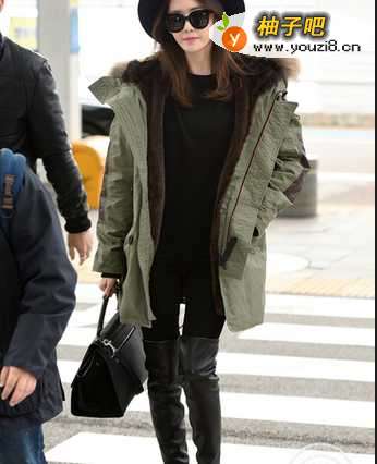 3派克大衣搭配短靴,再挽起头发或扎个丸子头,很有味儿哦噢。
