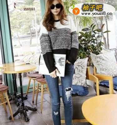 2春秋季选择一款自己喜欢的针织衫搭配牛仔裤非常漂亮大方。