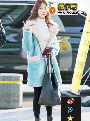4羊羔绒大衣搭配黑色短靴,很可爱又时尚。