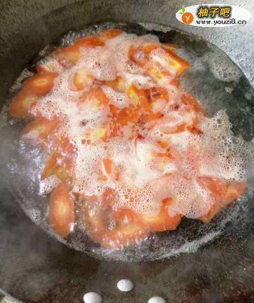 3胡萝卜切片,饭锅里焯水,煮至7分熟,再捞出。