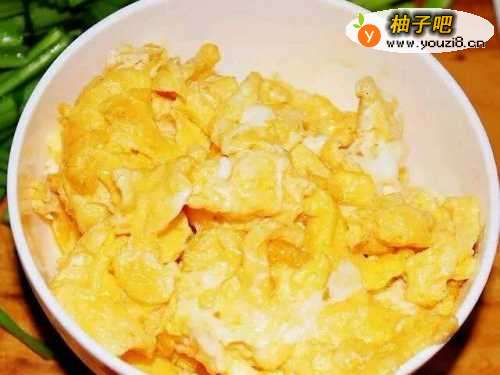 2在锅内放一点儿油,油烧热后,把打散的鸡蛋油中,慢慢推平,让鸡蛋液与油充分的接触。待鸡蛋液定型后,把鸡蛋打散分成均匀小块儿,但也不要太小,适度就可以。将鸡蛋乘出来放在碗中备用。鸡蛋不需要煎的太久,鸡蛋液定型就可以拿出来了。因为一会儿我们还要把鸡蛋放入锅中和韭菜一起炒,鸡蛋煎得太久就会变老,影响口感。