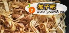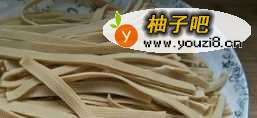 3腐皮洗净切成细条。
