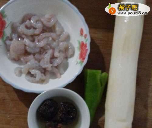 干香菇先用水泡发。其他食材洗净切好。