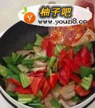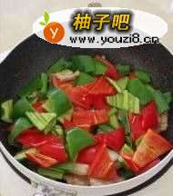 5翻炒均匀,加入青红椒