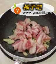 3倒入切片的五花肉
