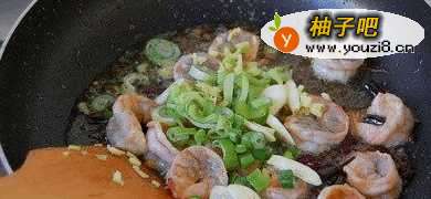 7炒至虾仁断生时,放入葱姜蒜快速翻炒。