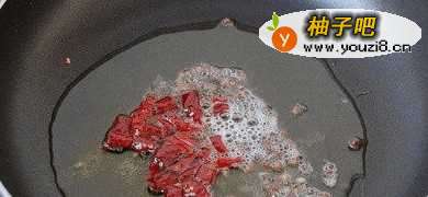 5锅内油烧至6成热,放入干辣椒和花椒煸炒出香味。