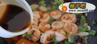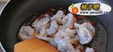 6放入虾仁炒散。